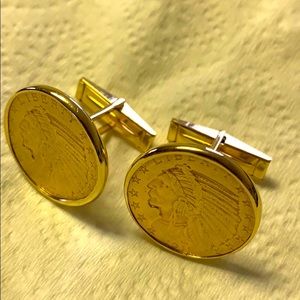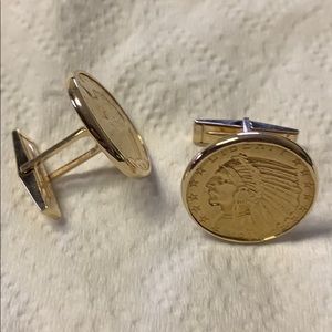 This are 22k indian head $5.00 coins and 14 k bezel used but in excellent condition. 1 coin from 1910 and the other from 1911