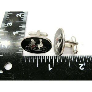 Cufflinks Tandem Bicycle Man Woman Tux Shirt Dress Suit Vintage