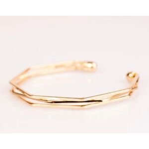 The three gold bars that make up this bracelet bend into sharp angles across the wrist area which creates an edgy geometric cuff.