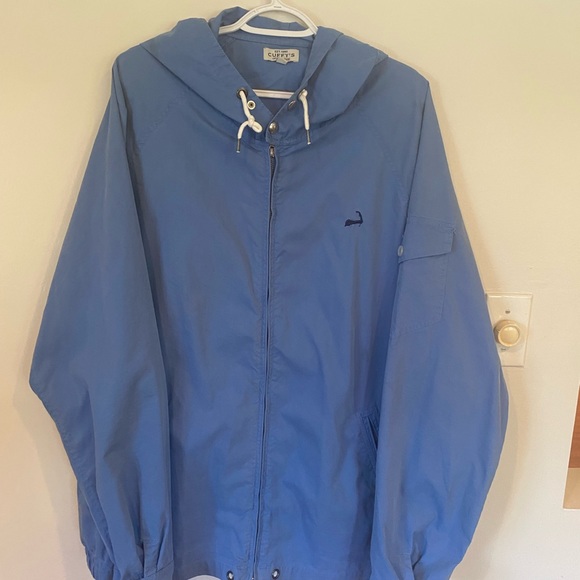 Medium blue spring/fall jacket. 30” from back neckline to bottom. 26” pit to pit. Gently worn but in great condition.