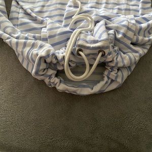Cuffy’s cape cod v neck hoodie with draw string bottom blue and white stripe size Large