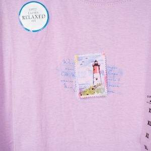 NEW Cuffy's of Cape Cod ResortWear Women's Size XL Tee T-Shirt; 100% Cotton; Lavender; Nauset Lighthouse; Nauset Beach Light; Beach Ocean Vacation Resort Theme. This item is in new condition--new with tags (NWT). Please check measurements before purchasing. Measurements: