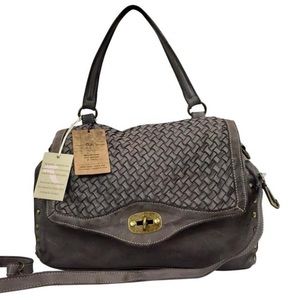 Cuir Rose Satchel Handbag, 100% Authentic Genuine Italian Leather, Gray New with tags,