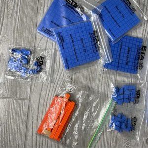Cuisenaire rods base 10s foam & plastic home school Montessori blocks counting . Blue are foam and orange are hard plastic . Around 100 orange 10 rods blue singles , blue 1 rods and blue flat 100 flats
