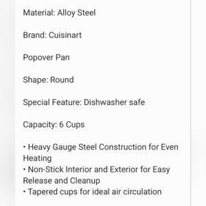 Cuisinart AMB-6POP 6 Cup Popover Pan Allot Steel, Non Stick, Tapered Cups.