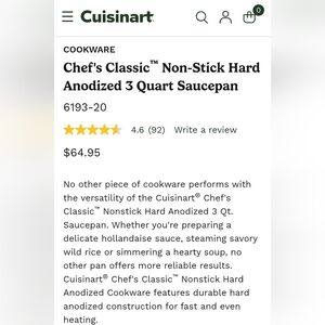 Cuisinart Chef's Classic Non-Stick HardAnodized 3 Quart Saucepan w/ Cover NEW