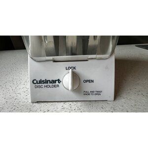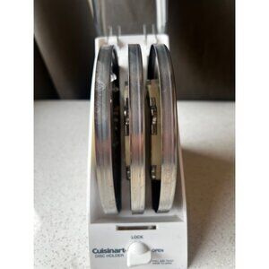 This Cuisinart disc holder provides organized storage for blades and features a locking base for safety. It comes with three durable stainless steel blades.