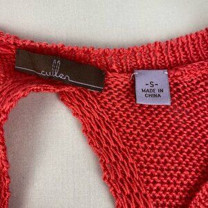 Cullen women's size small, it is loose knit, high-low hem, sleeveless, round neckline, pullover, open back, stretchy, lightweight fabric with coral pink color. Materials 100% linen. MFSR:$99.00 Care machine was cold lay flat to dry. Condition is very good as shown in pictures. Please preview the measurements to ensure it fit.
