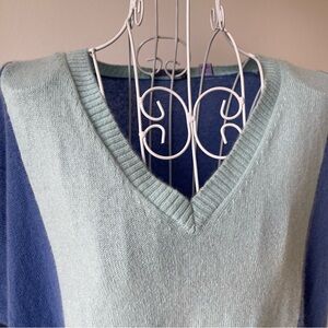 Cullen cashmere color block long sleeve v neck slouchy sweater pullover blue M