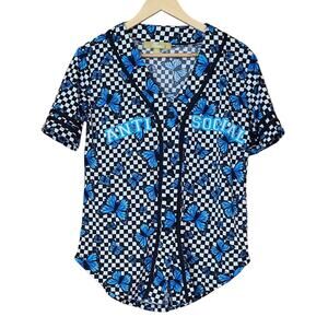 Cult Favorite Butterfly Checkered Antisocial Short Sleeve Top Women's XS