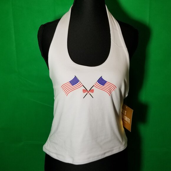 Cult Favorite White Halter Top Low Back Tank Size Large 4th of July Summer NWT