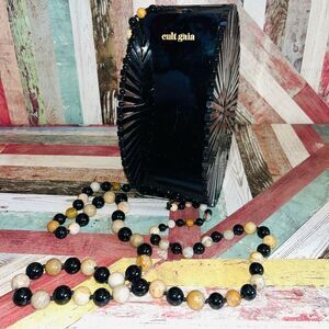 Cult Gaia Acrylic Beaded Luna Circular Crossbody Shoulder Bag Top magnetic closure. Tonal Stitching. Earthy tone beads strap - removable. Reminds me of what they use on the “Runway”. EUC