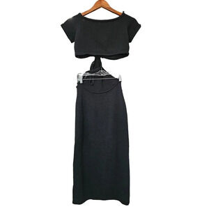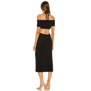Cult Gaia Alicia Knit Dress in Black. Size M / Medium. Features halter neck with tie closure, off-the-shoulder, short sleeves, waist cut-out with gathered detail at bust, textured cotton knit fabric, sheath silhouette, and midi length. Style KD1866YN. 77% Cotton, 23% Polyester. Excellent pre-owned condition, no flaws.