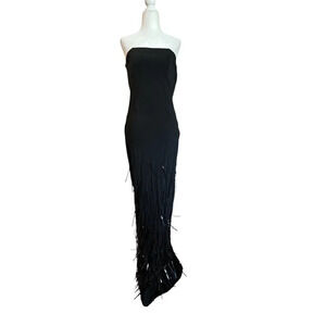 Lightweight crepe jersey fabric with tonal fringe embellishments at hem