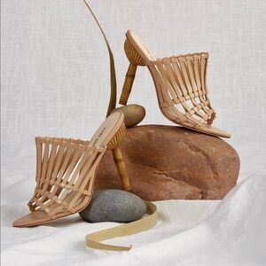 Cult Gaia Ark heel leather slide sandals with bamboo heel. New with tags in box with dust bag.