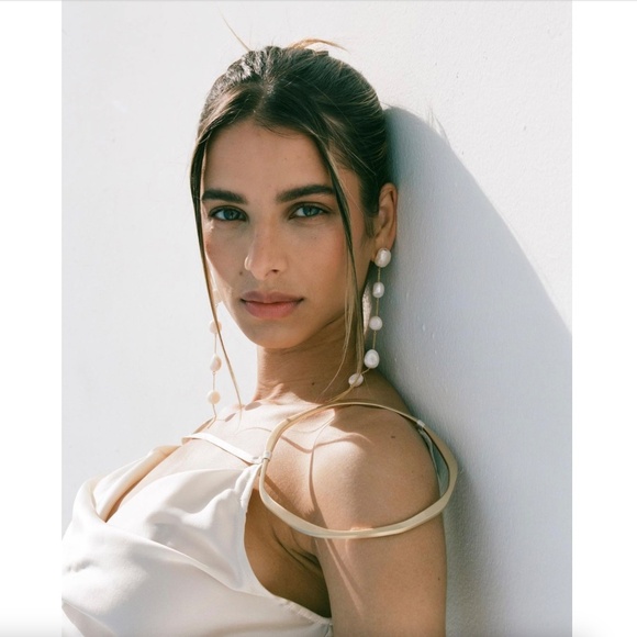 Cult Gaia delicate and light weight Atum freshwater pearl post back earrings. New with tags in box.