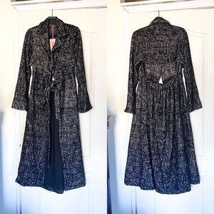 Cult Gaia Aya Matelassé Velvet Open-Back Coat Belted Long Black Size Small NWT