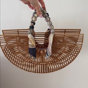 Elegant bamboo bag with a stylish multicolor scarf. Perfect for any occasion. Worn once. Perfect for summer. 17.5x10.