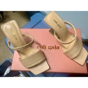 Step into style with these stunning Cult Gaia beige heeled sandals, perfect for any occasion. Featuring a sleek design with woven straps, these sandals combine elegance and comfort, making them an essential addition to your wardrobe.