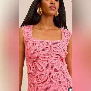 A sleeveless mini dress with a netting body and cord detail floral overlay.