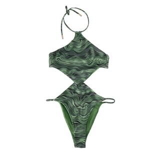Cult Gaia Camari Cutout One Piece Swimsuit in Saltation Basil Multi (green groovy wavy print) in a size XS. Excellent preloved condition! :)
