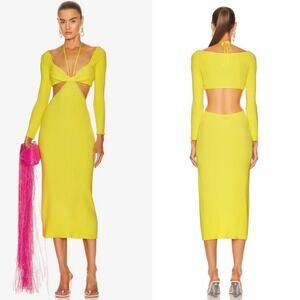 Cult Gaia Enzo Strappy Cutout Knit Maxi Dress Size Large Ribbed Yellow