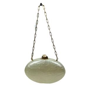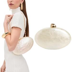 Style Tags: Cult Gaia, Eviana, Clutch, Pearl, Oval Bag, Chain Strap, Evening Bag, Cocktail Bag, Statement Bag, Beaded Bag, Sculptural Design, Acrylic, Resin, Iridescent, Elegant, Modern Glam, Party Purse, Designer Handbag, Luxury Accessory, Bridal Bag, Special Occasion, Minimalist, Chic, Trendy, Women’s Evening Clutch.