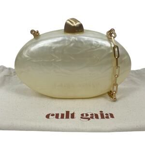 Cult Gaia Eviana Clutch Pearl Oval Bag Chain Strap Evening Cocktail Bag