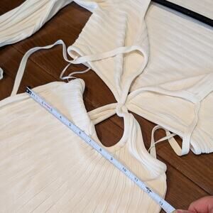 Cult Gaia Fergie Off White Cutout Ribbed-knit Midi Maxi Dress, size M