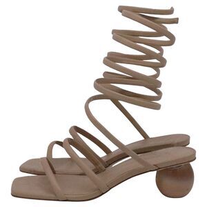 Delivery Duty Paid included – The Cult Gaia Freya Ombre Sculpted Heel Sandals in beige cow leather are a masterclass in artful design, featuring a unique ombre-effect heel that doubles as a statement piece. Their minimalist upper in soft, neutral leather offers versatile elegance for both casual and elevated looks. **Style tip:** Pair them with a neutral-toned linen dress or wide-leg trousers to highlight the sculptural heel and keep the look effortlessly chic.