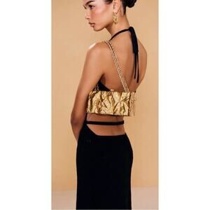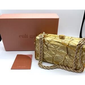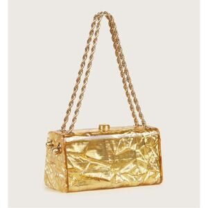 Cult Gaia Hajar Crinkled Acrylic Gold Chain Shoulder Bag is brand new with box, however has a flaw, please read description below for details.