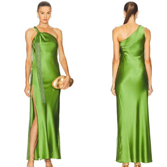Cult Gaia Keya Gown in Pistachio Green Satin Maxi Dress Formal 2 XS XSmall