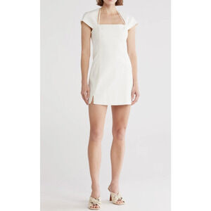 Cult Gaia Lenora Short Sleeve Minidress with Halter Strap Detail Side Slit XL