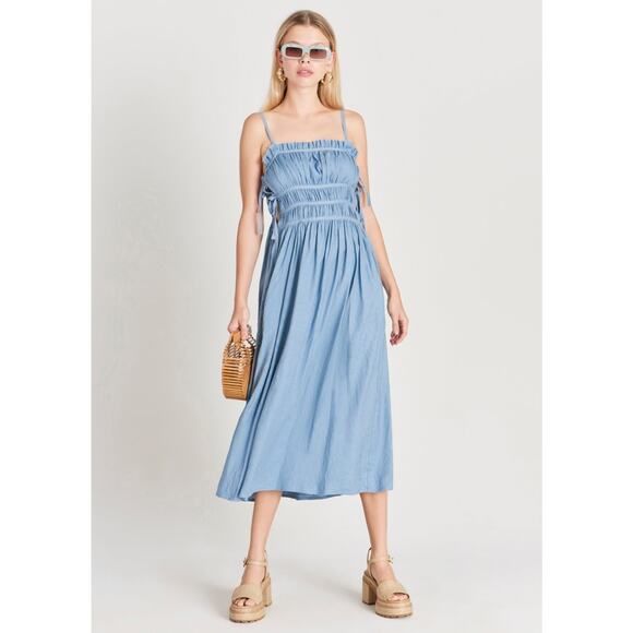 Cult Gaia Lola Smocked Linen-Blend Midi Dress size Large $358