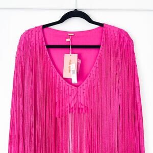 Cult Gaia Lorena Top In Anemone Fringe Pink Crop Long Sleeve