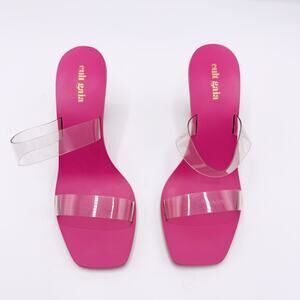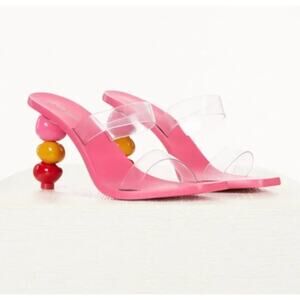 Set atop a triple-stacked bauble heel, these minimalist mules are finished with ultra-modern vinyl straps. Vinyl upper Open toe Slip-on style Rubber sole Imported SIZE Stacked bauble heel, 3.25" (82mm).
