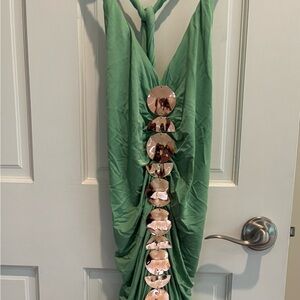 Cult Gaia Mint Dress with Gold Details