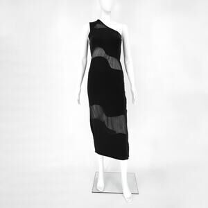 Cult Gaia NWT Kalila Knit Midi Dress Women’s Size Small Black Sheer Panel