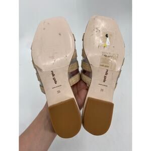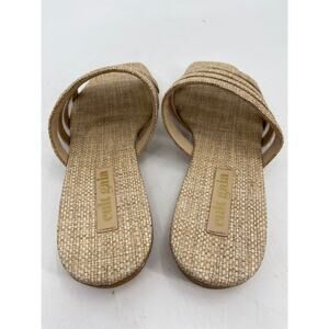 Cult Gaia Natural Beige Sarelle Woven Raffia Straw Flat Square Toe Sandals Sz 35