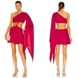 Cult Gaia One-Shoulder Lucienne Twist Mini Dress in Camellia Pink, Size Small