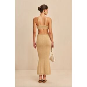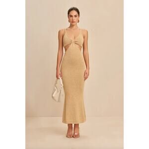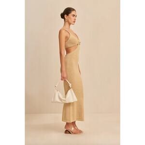 A modern icon of effortless sensuality, the Serita Dress by Cult Gaia is a woven knit maxi featuring signature waist cutouts and an open-back silhouette that perfectly highlights the body’s natural curves. Crafted in a soft sand tone, this figure-hugging style is both refined and resort-ready — ideal for beachside evenings or sun-drenched getaways.