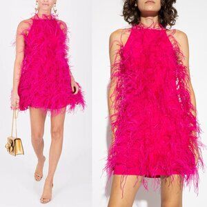 Cult Gaia Shannon Hot Pink Qajar Rose Ostrich Feather Mini Dress Size XS