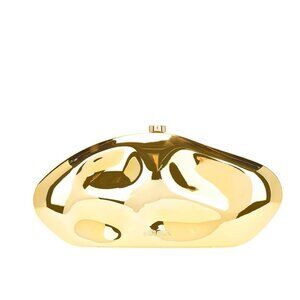 The Caldera Clutch is a sculptural wonder. Her ultra-shiny gold shell gives off a beautiful reflection from the textured dents and forms of the bag. A gold-toned clasp at the top keeps this safely closed. Her flat bottom is made to display this work of art.