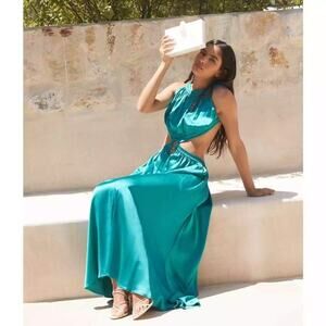Cult Gaia Theia Cutout Backless Azure Teal Maxi Dress Size Small