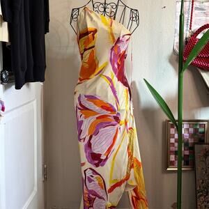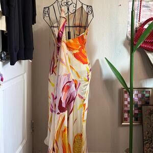 Cult Gaia silk maxi dress, bold and colorful florals fit for a rooftop dinner, coastal walk and everything inbetween.