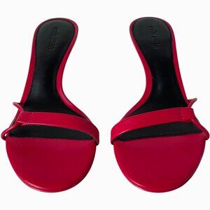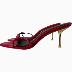 Cult Gaia Veda Sandal Size 37.5 Ruby Red Leather Gold Heel Strappy Open Back