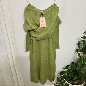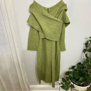 This shoulder-baring dress features a wrapped detail at the bust that crosses over at the front and back. Long ever so slightly exaggerated sleeves extend from the wrapping detail and offer a slender, yet relaxed fit. Designed in a lush wool, the Zennie has an ultra-flattering body skimming fit with a hem that hits the mid-calf.