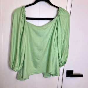Cult Gaia Aurel green top. Tie front. Peasant style. Puff sleeve. Gently used condition- one tiny pull on the back. Size large