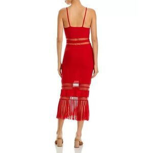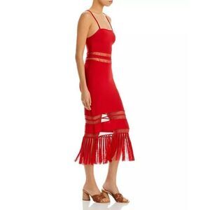 Cult Gaia Women's Red Kiki Knit Sleeveless Fringe Hem Midi Dress Size Large NWOT