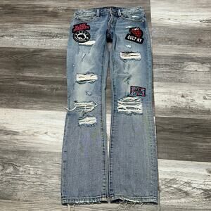 Cult Of Individuality Black Sabbath Sex Pistols Faded Blue Mens 29x32 Distressed Punk Rocker Slim Jeans Light Wash Denim